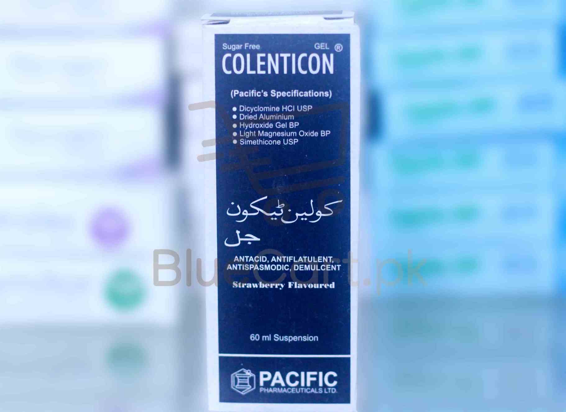 Contains: Aluminium Hydroxide and Oxide [200 mg/5ml], Dicyclomine (HCl) [2.5 mg/5ml], Magnesium Oxides and Hydroxides [100 mg/5ml], Simethicone [20 mg/5ml]